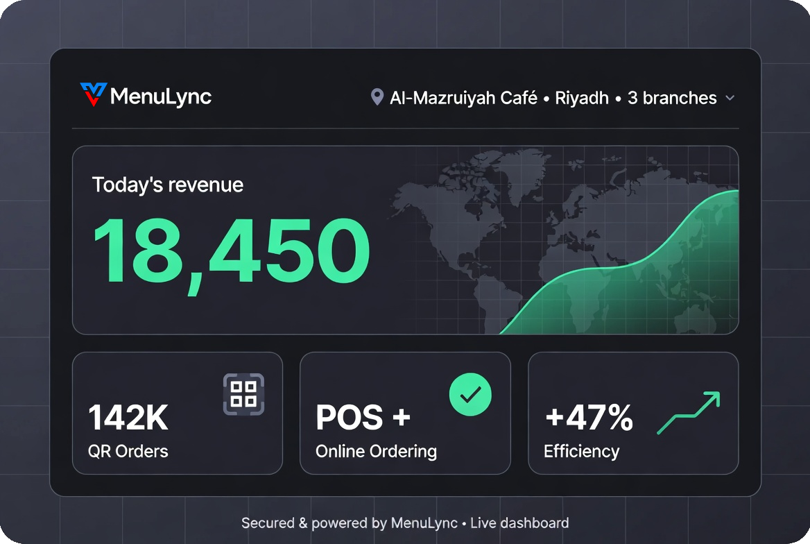 MenuLync is the complete cloud-based restaurant & café management system built for speed, simplicity, and scale. From QR ordering and table management to multi-kitchen synchronization and real-time multi-branch control — everything is in one dashboard.